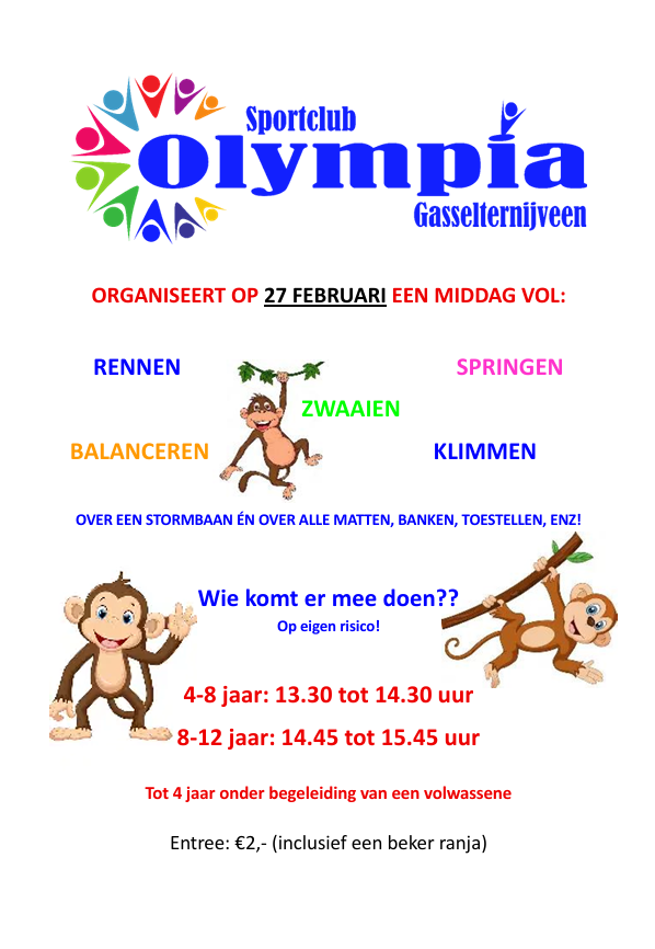 Sportclub Olympia is dé sportclub van Gasselternijveen en omgeving, waar iedereen welkom is om op zijn of haar eigen niveau, dichtbij huis, te komen sporten én sociale contacten op te doen en te onderhouden.